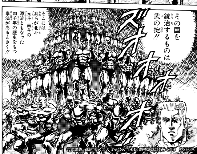 北斗の拳の修羅の国編において描かれていることのひとつは、この苛烈な秩序による暴力と収奪への抵抗である。そして、第一部と比較して評判のよろしからぬ第二部自体、意図してかせずにか、このテーマが冒頭から一貫して描かれているのである。このシリーズでは、それについて論じよう。
